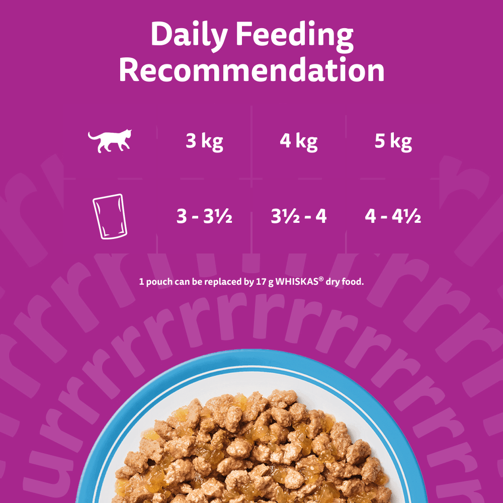 Specially prepared to preserve the natural goodness and deliciousness of high quality ingredients, our favourite meals will see your cat rush to the bowl faster than ever before! Our tasty recipes are designed for contented purrs at every age….at mealtimes and beyond.100% high quality ingredients and specially formulated to provide all of your 11+ cat's daily needs.Mouth-watering flavours & textures for maximum purrs.Easy digestion & urinary tract health supportWith added prebioticsNo added artificial colours and preservatives.Ingredients